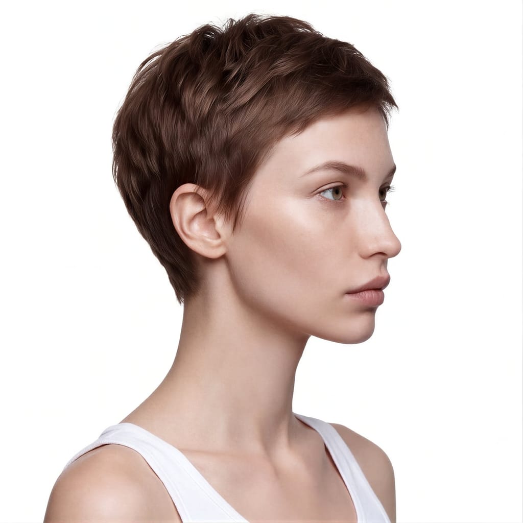 Nina Zaleska is a compelling new face characterized by her striking androgynous pixie cut and intense green eyes. Her razor-sharp bone structure and symmetrical features provide a versatile canvas for both high-fashion editorial and luxury beauty campaigns.